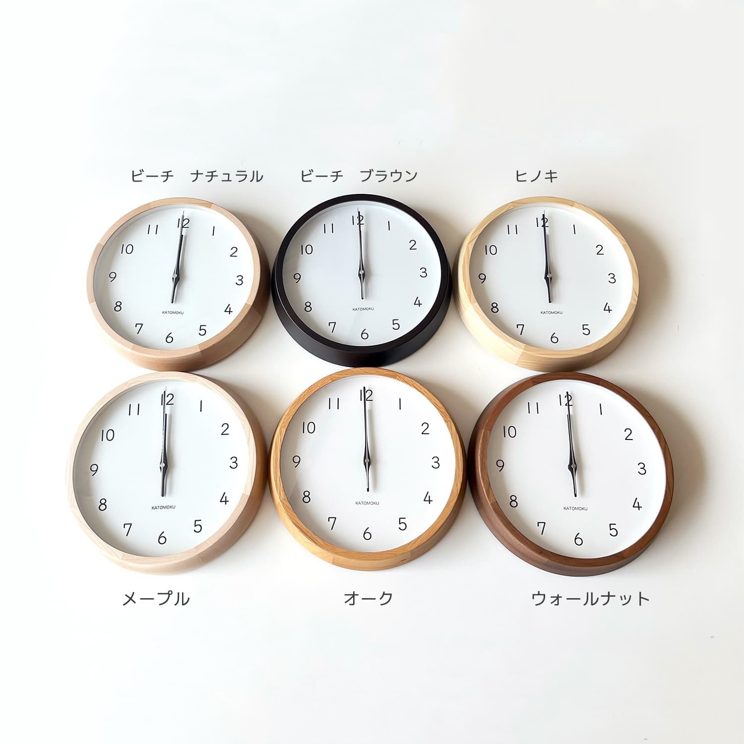 5樹種6種類のバリエーションの時計。